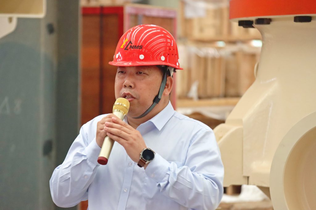 ? ? 易縣巖峰建材高巖董事長(zhǎng)表示很高興參加此次交付慶典,希望在雙方的共同努力下,將項(xiàng)目打造成為國(guó)家級(jí)的規(guī)模化、環(huán)?;?、大型化、智能化綠色礦山,希望和南昌礦機(jī)攜手并進(jìn)、合作共贏。