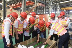 龔友良總裁向龐帥主任介紹車間情況